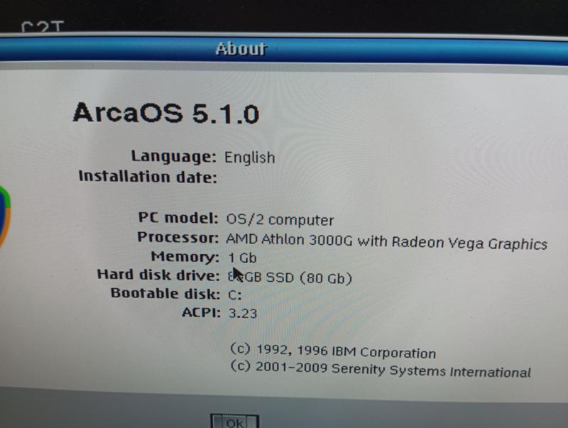 Компьютер OS/2, ArcaOS 5.1.1 уже установлена.